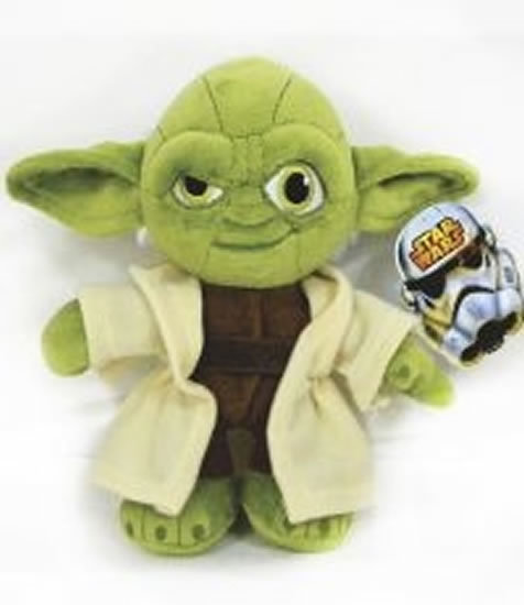 Plyšová postavička Yoda ze Star Wars. Yoda je mistrem Jedi neznámé rasy. Měří jen 66cm, ale jeho schopnosti používat Sílu jsou daleko větší. Yoda je velmi starý a velmi moudrý, proto také řeší většinu konfliktů za pomoci Síly. Svůj meč používá jen v případě opravdové nouze.