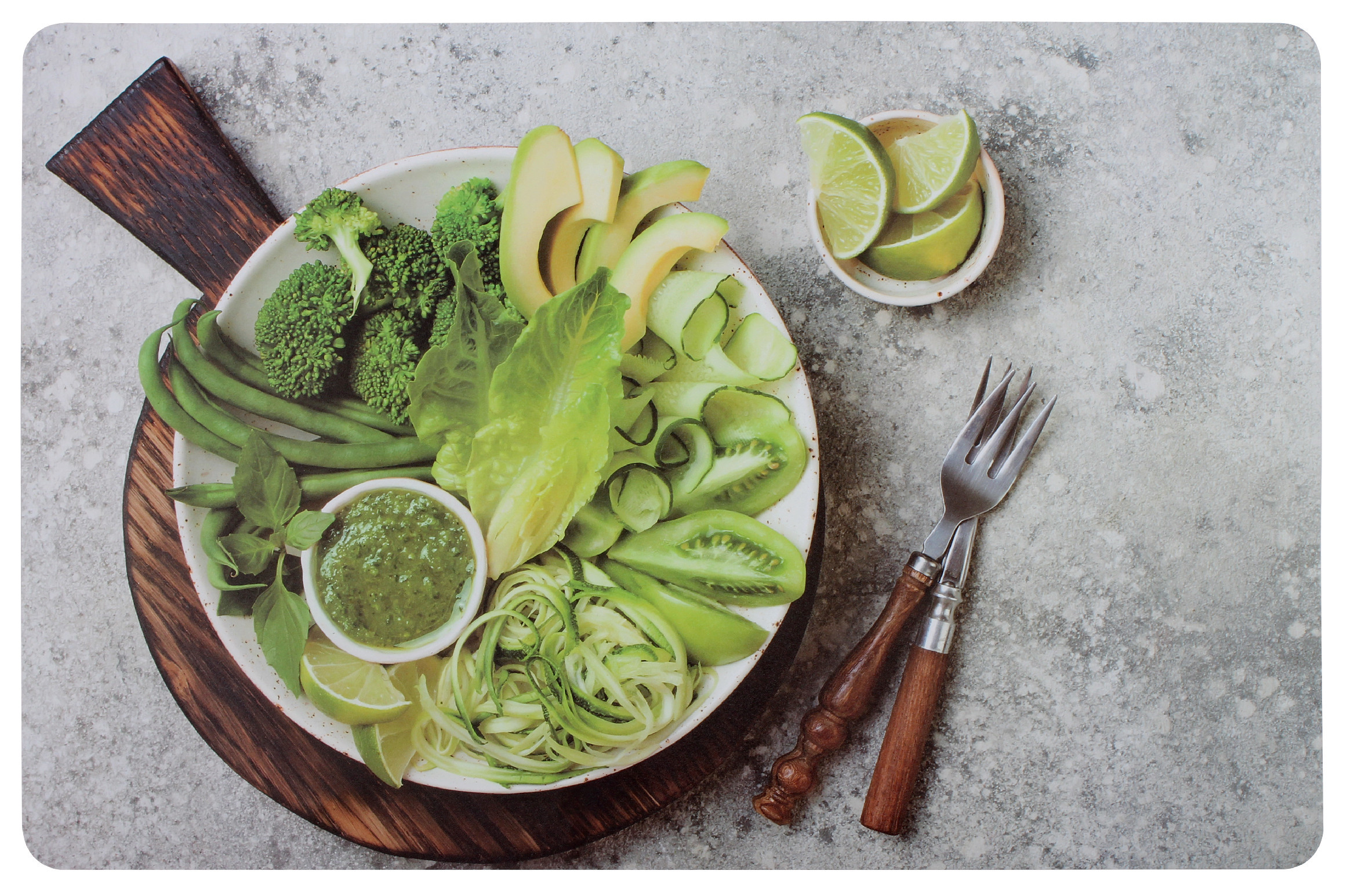 Moderní prostírání je ukázkou kvalitního a kulturního stolování, které má jak estetický, tak praktický význam. Má omyvatelný povrch, chrání povrch stolu před znečistěním a snižuje hluk při pokládání talířů a příborů. Prostírání na jídelním stole vizuálně rozděluje prostor pro každého strávníka. Prostírání s moderním motivem z plastu o rozměrech 28x43,5 cm.
