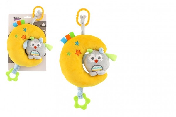 Mesiac so sovou plyš záves na postieľku/kočík naťahovací hrací strojček 24cm na karte v sáčku 0+
