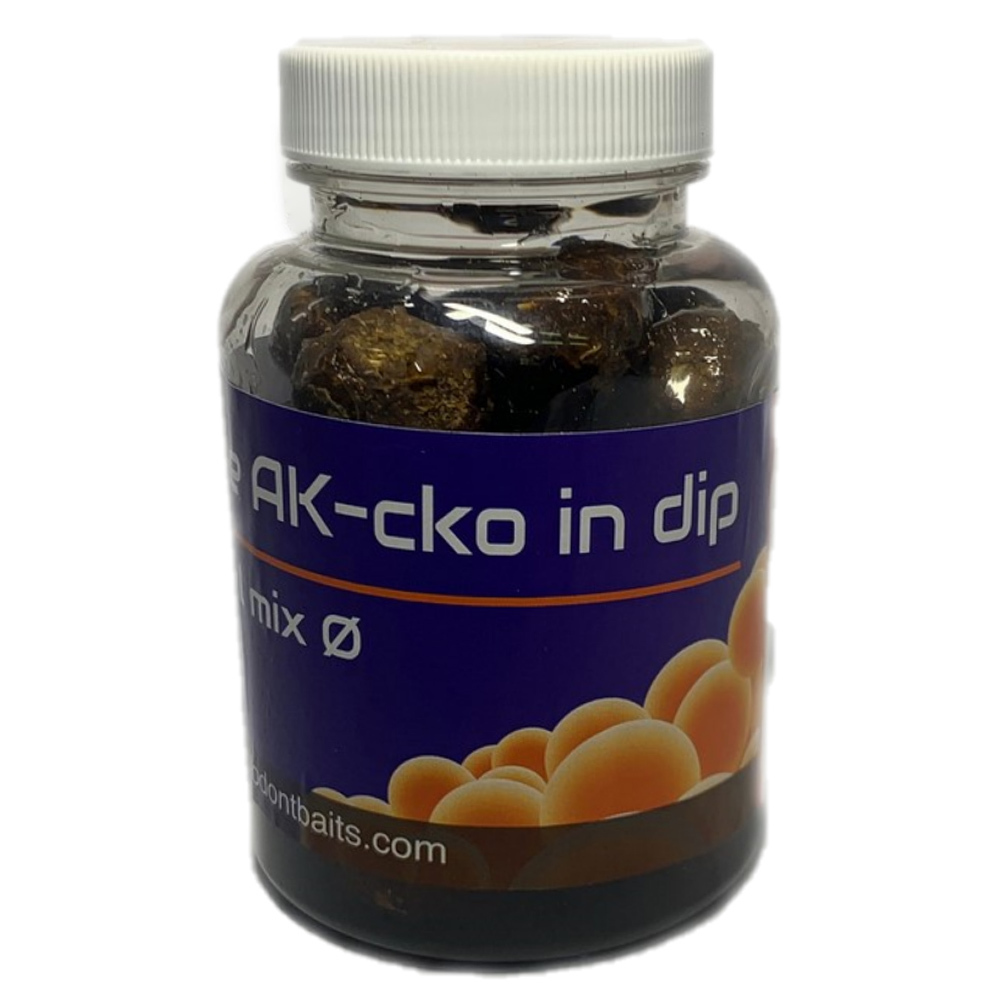 Boilies AK- cko tentokrát v dipu. Vyzkoušejte mix průměrů 20, 24mm boilie umocněný rybářským dipem stejné příchutě. Velice účinná nástraha v naší nabídce!