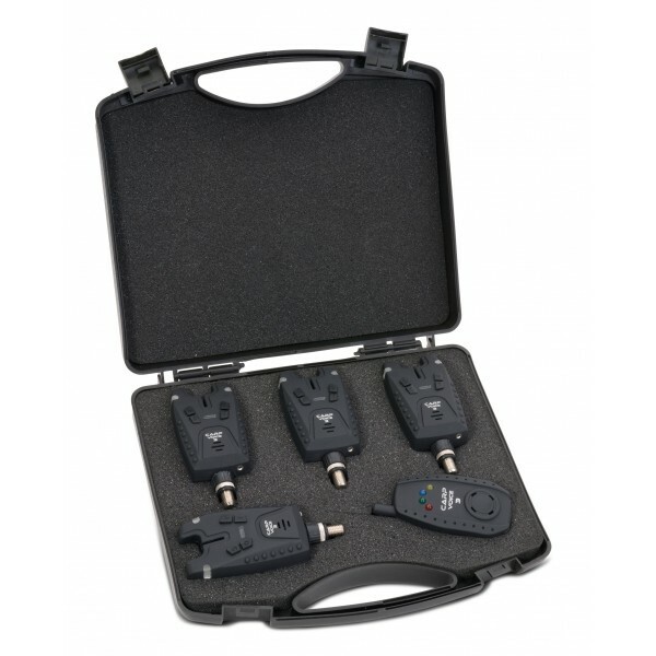 Sofistikovaná technologie v moderním designu v praktickém pouzdře. To je hlavní charakteristika nových hlásičů záběru s názvem Carp Voice 3. Všechny funkce jsou snadno ovladatelné pomocí tlačítek. Vítanou a užitečnou funkcí je přepínatelné noční osvětlení. Extra odolné pogumované pouzdro je odolné proti stříkající vodě a proti nárazům. Na spodní straně je 2,5 mm konektor pro připojení swingru. Výhodou je i funkce ztlumení, kdy je aktivní pouze LED dioda. K dispozici jsou v barvách žlutá, červená, modrá a zelená, v sadě 2, 3 nebo 4 kusy plus příposlech.