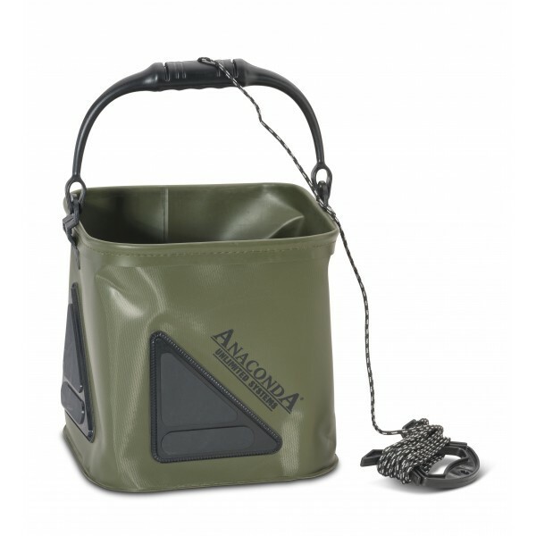 Skládací barel na vodu. Ideální pomocník při lovu z lodi nebo na místech kde je vysoký, strmý břeh.                                                                                             materiál: zesílené PVC obsah: 17 litrů včetně 6 metrů lana rozměry: 26 x 26 cm prečítať celé
