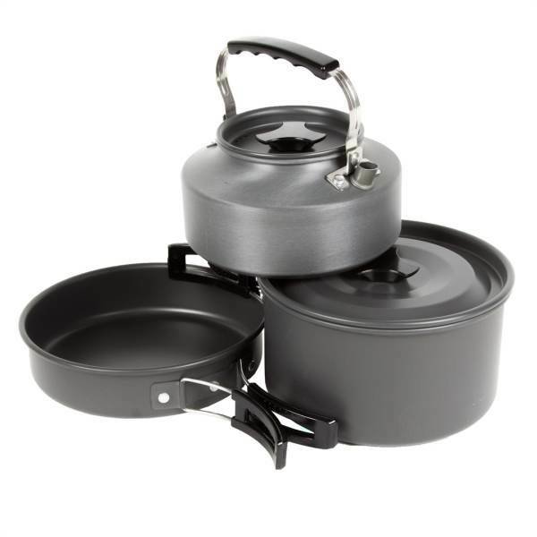 Set kempingového nádobí ve kterém naleznete hrnec s pokličkou, pánev a konvici na rychlé sevření vody vše dodáváno s praktickým pouzdrem na přenášení. Ideální souprava na přípravu jídla nebo dobré šálku kávy u vody v přírodě. Kompaktní set vyrobený z vysoce...