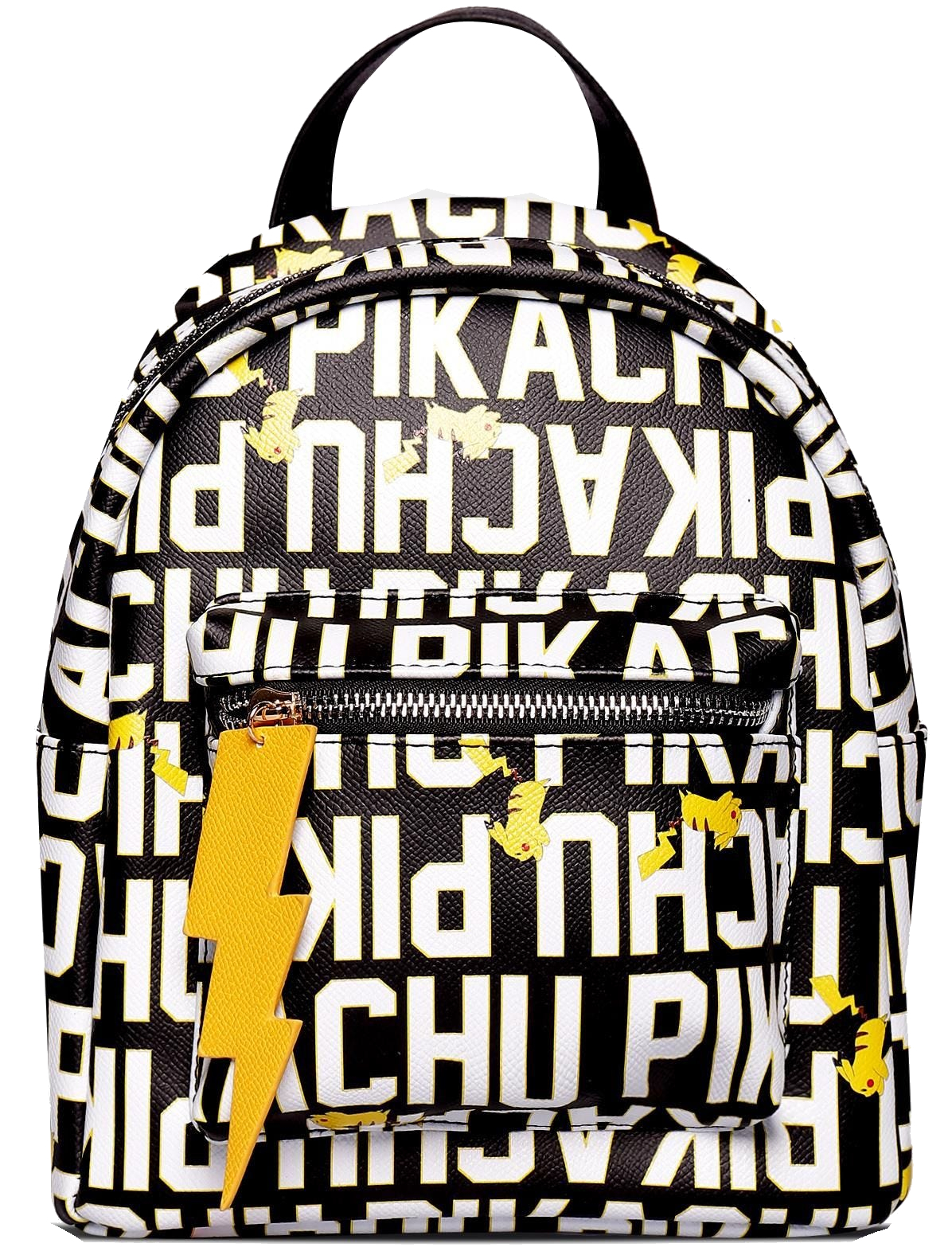 Černý batoh vyvedený s celoplošným potiskem Pikachu a se žlutými detaily