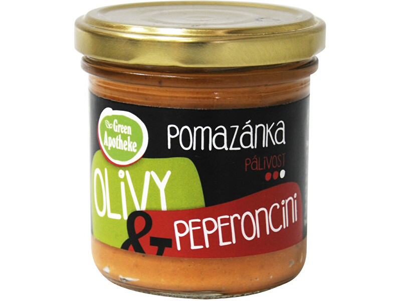 Pomazánka olivy a peperoncini je vyrobena podle originálních receptur, v malých sériích a s velkým podílem ruční práce. Jejich základem je zelenina, semínka a koření, bez použití přídatných látek či konzervantů. Pomazánka s olivami, rajčaty a známým pikantním italským kořením.