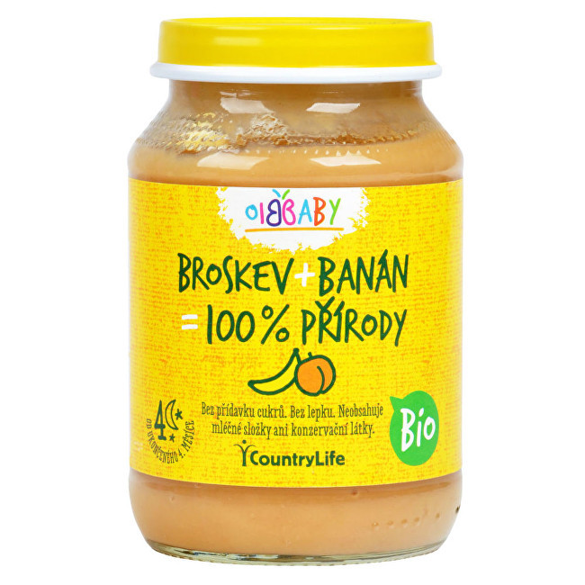 Broskev a Banán BIO - ovocný příkrm. Pro kojence od ukončeného 4. měsíce. prečítať celé