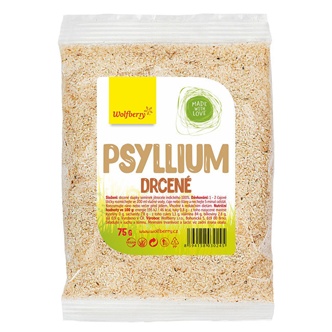 Psyllium drcené Wolfberry 75 g. Psyllium je vláknina, která se získává ze slupek semen jitrocele indického. Tyto slupky mají mimořádnou schopnost čistit trávící systém. prečítať celé