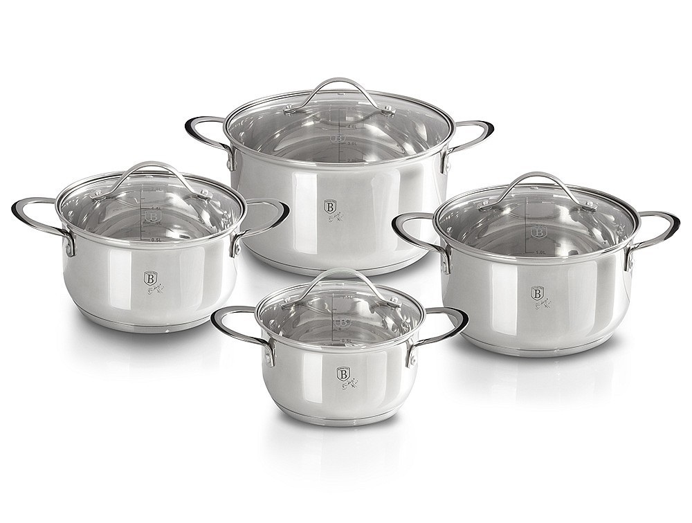 sada kvalitního nerezového nádobí 18/10 se skleněnou poklicí a nerezovou pánví s poklicí nerezové rukojeti a úchyty, leštěný povrch se satynovým dekorováním rovnoměrná a rychlá tepelná vodivost zajistí úsporné vaření odolný materiál nádobí je nenáročný na čištění, vhodný i do myček nádobí...