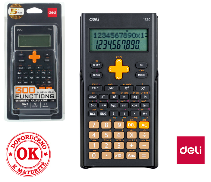 10+2 místný dvouřádkový displej- automatické vypnutí- napájení - 1ks baterie LR44- obsahuje 300 funkcí- funkce ANS- zlomková početní funkce- výpočet směrodatné odchylky- transformace souřadnic- editace dat- průběžný výpočet, paměťové funkce - součástí je kryt- rozměr 162x82,4x18 mm