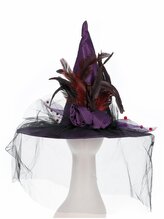 Smiffys Čarodějnický klobouk s peřím a závojem fialový