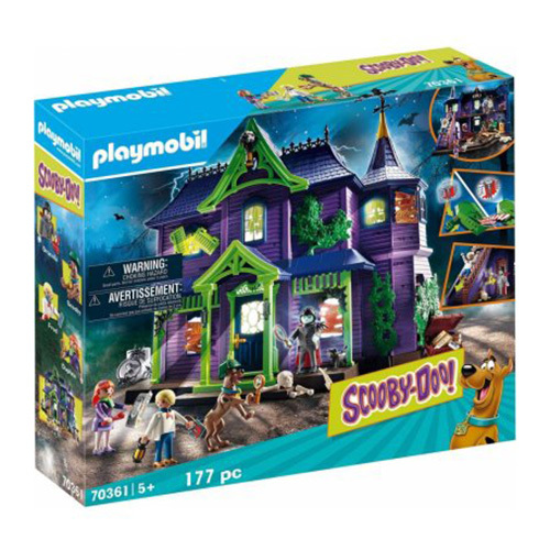 Scooby-Doo, Fred a Daphne se chystají odhalit tajemství strašidelného domu. V temných koutech a strašidelných chodbách domu číhají děsivá překvapení a pasti. S pomocí aplikace Playmobil mohou být duchové promítáni na zeď jako hologramy.Baterie: 3 x 1,5V AAASada obsahuje: 4 figurky, strašidelný dům, rakev, kočku, žebřík, hodiny, křeslo a další doplňky.Vhodné pro děti od 5 let.