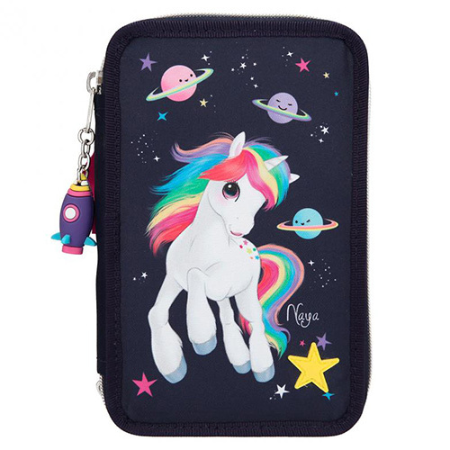Penál s výbavou Ylvi and the Minimoomis, Tmavě modrý, Naya a planety, světelný efekt