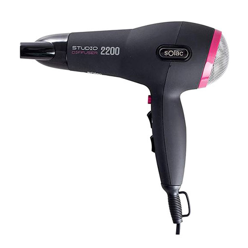 Vlasový vysoušeč Solac, SH7082, měkká rukojeť, difuzér, 2 úrovně výkonu, 3 teplotní úrovně, tlačítko studeného vzduchu, závěsné oko, 2200 W
