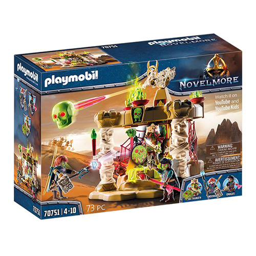 Nemrtví se nebojí ničeho. Odváží se někdo přiblížit k chrámu, bude uvítán lebkami z kostlivého děla. Před každým bojem se zásobují čerstvou energií, a také kvůli tomu stojí na kouzelném prameni uprostřed chrámu a čekají, až je zářící zelený sliz nabije.Sada obsahuje: kostlivce, dva učedníky čarodějů, chrám se světelným modulem, kostlivé dělo, pavučiny, pochodně a další doplňky.Vhodné pro děti od 4 let.
