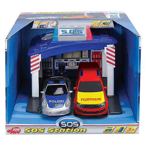 SOS stanice značky Dickie se světelnými a zvukovými efekty, do které se vejde policejní i hasičské auto. Každého malého chlapce jistě potěší tato záchranná stanice, se kterou mu při akčním zásahu nebude opravdu nic chybět. Autíčka jsou součástí balení, jezdí na volnoběh.Baterie: 3 x 1.5V AA (jsou součástí balení).Vhodné pro děti od 3 let.