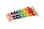 Krásně barevný dětský xylofon vyroben z kombinace dřeva a kovových různě velikých desek, díky kterým se dítě učí jednotlivé tóny a učí se hrát jednoduché melodie skladeb pomocí dvou hůlek. Hračka rozvíjí smysly pro možnost hudební tvorby a pro rytmus.
