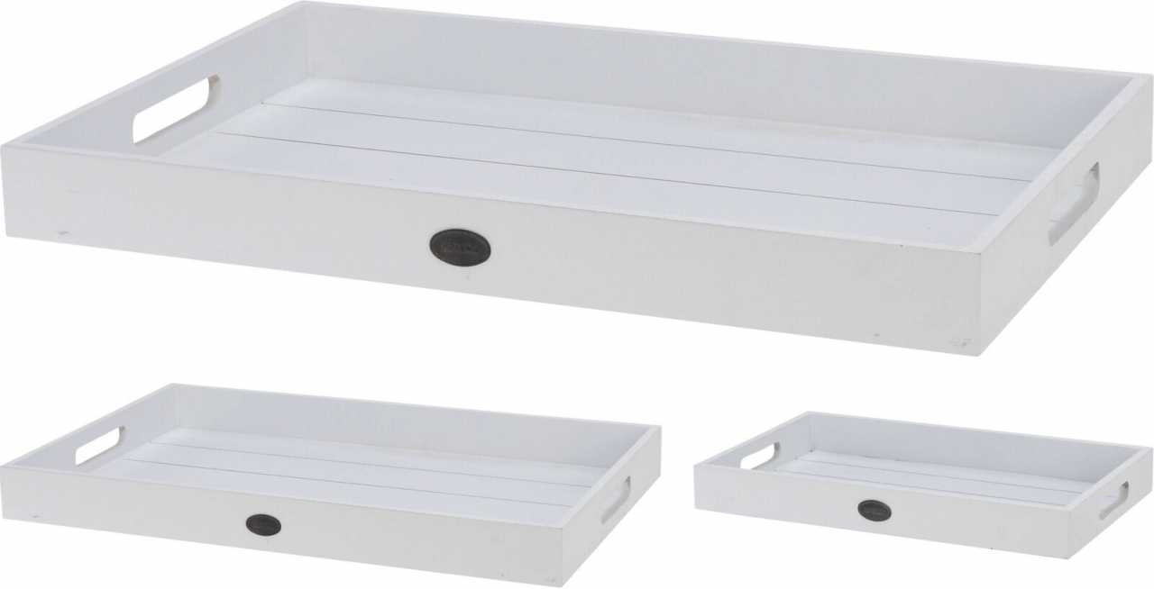 Sada bílých táců pro ještě příjemnější servírování pokrmů.Materiál: MDF deskaBarva: bíláRozměr:malývýška 4,5 cmšířka 20 cmdélka 34 cmvelkývýška 4,5 cmšířka 30 cmdélka 48 cm prečítať celé