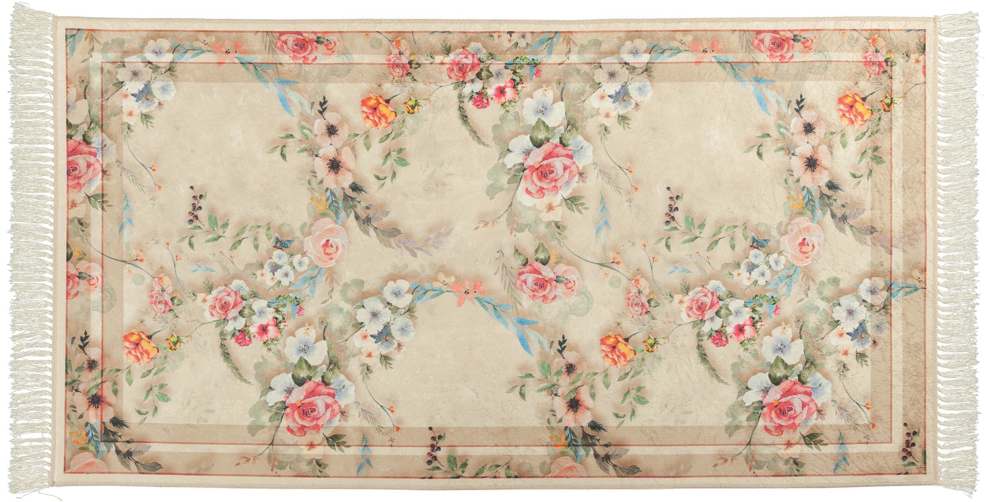 Kusový vzorovaný koberec s třásněmi SUNSHINE 80x150 cm béžové květy Multidecor