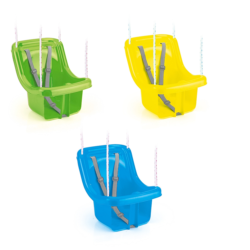 Velká houpačka s plastovým popruhem je ideálním pomocníkem pro malé děti! Díky bezpečnostnímu pásu je zajištěna bezpečnost dítěte. Provedení ve 4 barvách (červená, zelená, žlutá a modrá). Vyrobeno z kvalitního a odolného materiálu. Věk: 12m+. Rozměr: 40 x 44 x 36 cm. Váha: 1,41 kg.