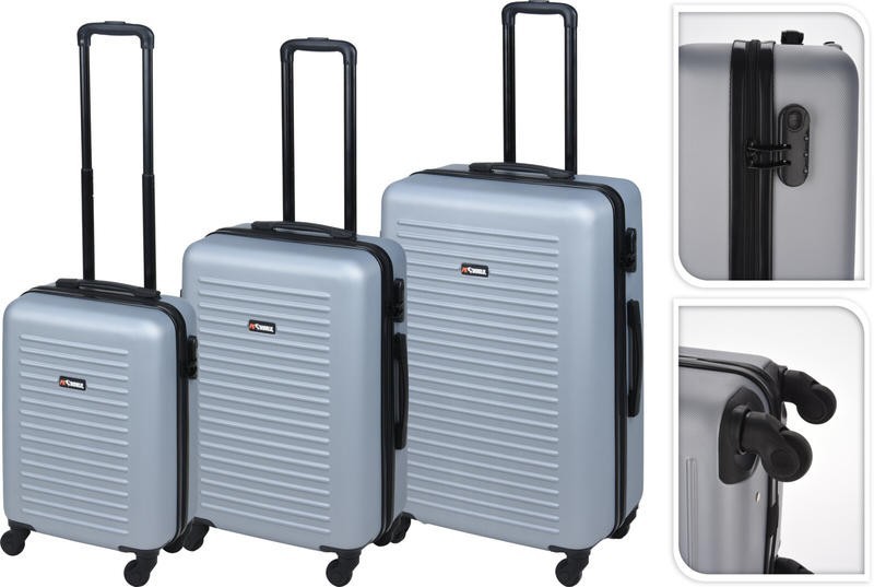 kompletní sada tří kufrů v různých velikostech pro různé příležitostiodolná cestovní zavazadla se čtyřmi tichými kolečky a TSA bezpečnostním kódovým zámkemmateriál: tvrzený ABS plastkvalitní, nepromokavý, pevný materiál s dobrou odolností proti poškrábáníteleskopická rukojeťv horní i boční části...