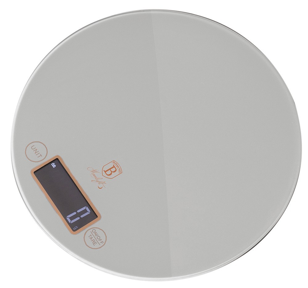 materiál: ABS + tvrzené skloLCD displejkapacita 5 kgfunkce Tare umožňuje odečíst nádobu ve které je váženofunkce automatického vypnutí při nečinostivolitelné jednotky: G, LB, KG, OZelegantní designrozměry: 19 x 2 cmbarva: stříbrná + rosegold metalickákolekce Moonlight Editionznačka: BerlingerHaus
