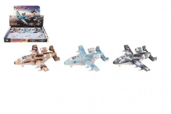 Lietadlo bojové kov/plast 15cm na spätné natiahnutie na batérie so zvukom, svetlom 3 farby 6ks v boxe