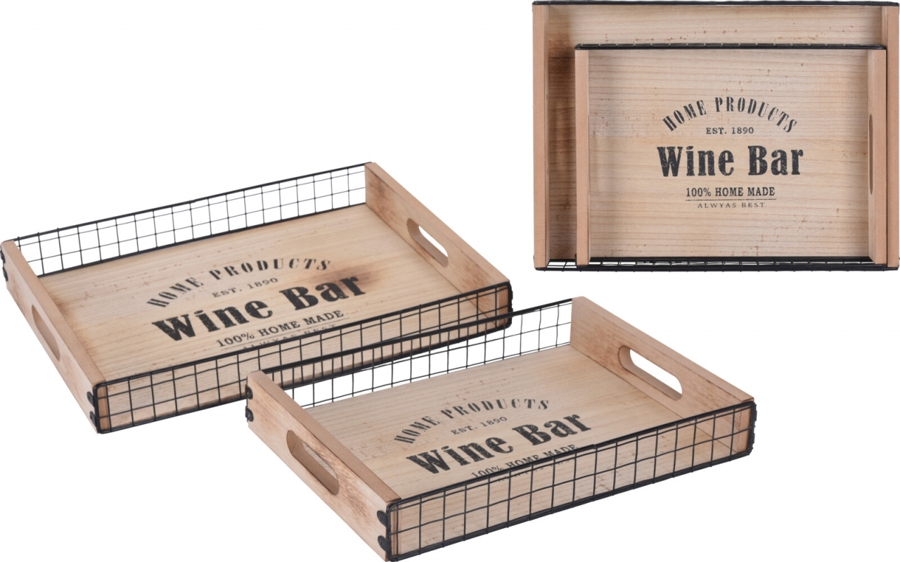 Sada dřevěných táců pro ještě příjemnější servírování pokrmů. Dvě strany táců kovové.Materiál: dřevo, kovBarva: hnědo-černáRozměr:velkývýška 5 cmšířka 30 cmdélka 40 cmmalývýška 5 cmšířka 24,5 cmdélka 34 cm prečítať celé