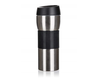 Cestovní hrnek AKCENT dvoustěnný, je vhodný na teplé i studené nápoje. Vnější část z nerezi 201 v kombinaci s černým silikonovým rukávem a vnitřní část z nerezi 304. Využitelný objem je 420 ml. prečítať celé