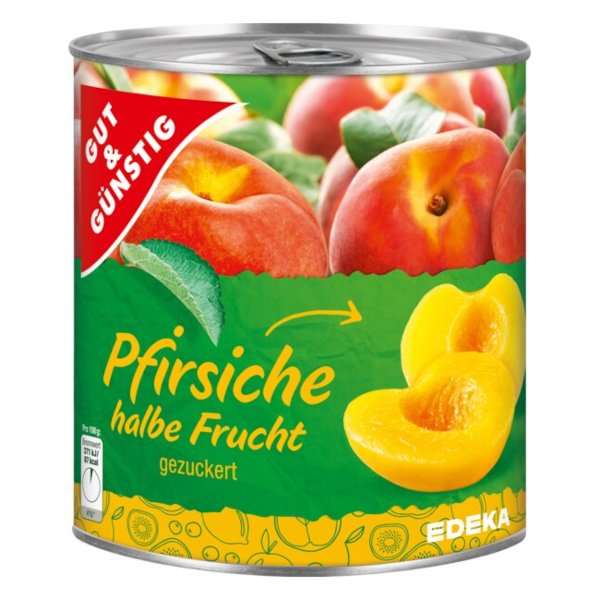GG Broskve půlené - loupané - v lehce sladkém nálevu 820gPůlené broskve se skvěle hodí k přípravě dezertů, želatinových dortů, koláčů a zmrzlinových pohárů, nebo jako příloha k jídlu. Jsou také výborným doplňkem do jogurtů a sladké rýže. Broskve jsou loupané, bez pecky. Čerstvě zpracovány ze sklizně.