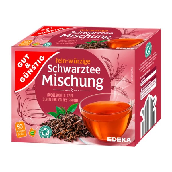 GG Černý čaj 50 sáčků, 87,5gTento aromatický černý čaj je mix z vyvážené směsi jemného Cejlonu a silného čaje Assam. Vyrobeno v Německu.Zalévejte vždy vařící vodou a nechte minimálně 3-5 minut vyluhovat.  prečítať celé