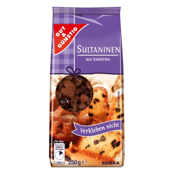 GG Rozinky sultánky z Jižní Afriky 250gRozinky se skvěle hodí na pečení, na svačinku nebo do müsli. Jsou také výborným doplňkem do jogurtů a sladké rýže.Sultánky se vyznačují kvalitou zpracovaných hroznů, které neobsahují jadérka. Nelepí se. prečítať celé