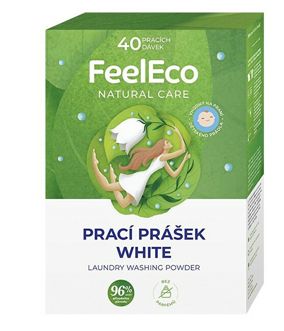 Prací prášek White je univerzální prací prostředek a je vhodný pro praní veškerého bílého a stálobarevného prádla. Prádlo dokonale vypere již při nízkých teplotách od 30 °C. Účinné složky jsou rostlinného původu a jsou snadno biologicky rozložitelné.