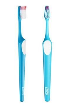 Kartáček na zuby TePe Nova softmá středně velkou hlavicije osazen 2660 velmi jemnými vláknykratší vlákna s oblým zástřihem šetrně čistí povrch zubů a odstraňují z něj zubní plakdelší vlákna na špičce mají rovný zástřih pro lepší vyčištění mezizubních prostor, dásňového žlábku a prostoru za...