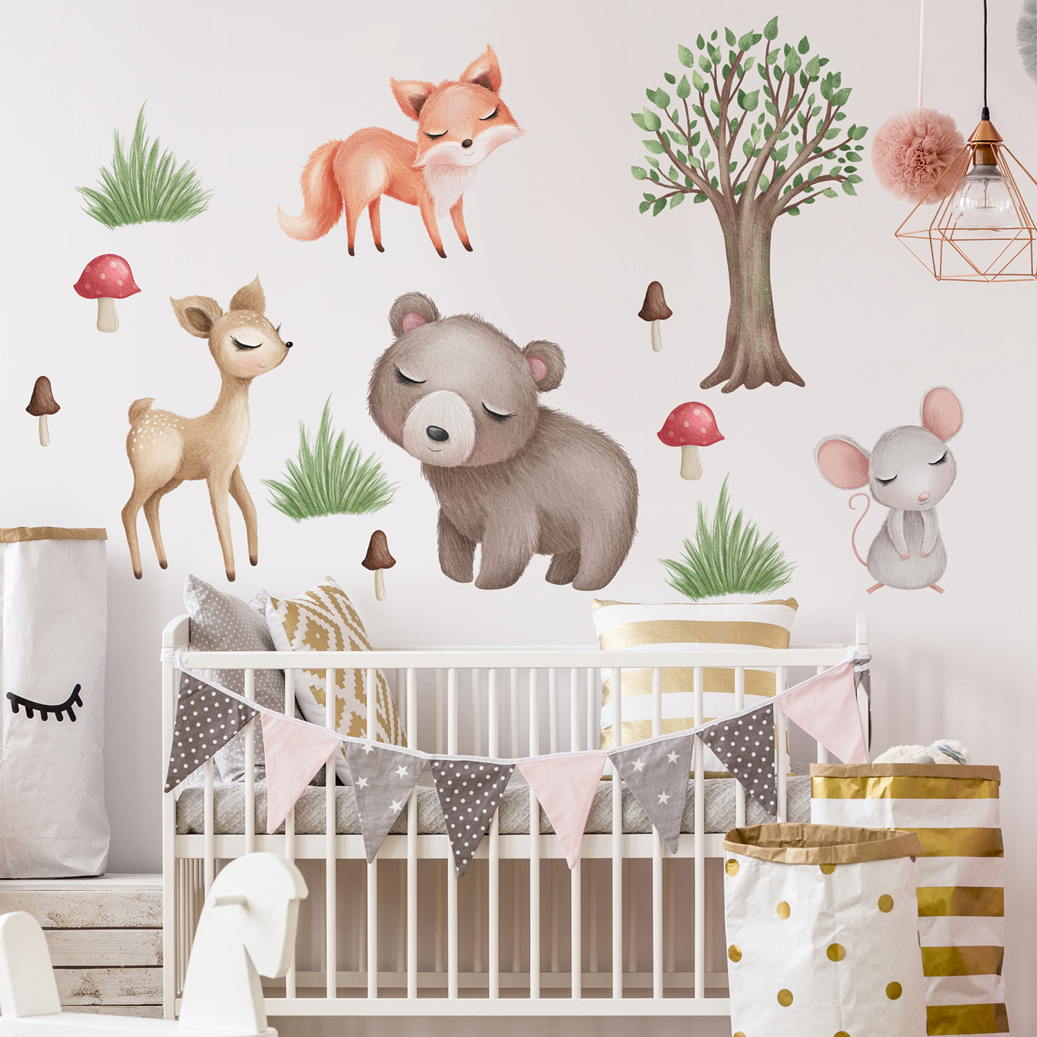 Samolepka na zeď - Veselý les XXL Tato veselá zvířátka rozdovádí pokojíček vašeho děťátka. Krásné barvy a malovaný vzhled doplní vaše stěny o neobyčejnou podívanou! Tato samolepka je tvořena archem o velikosti 120 x 90 cm, kde jsou naskládané jednotlivé díly tak, aby byla samolepka ve finále co...