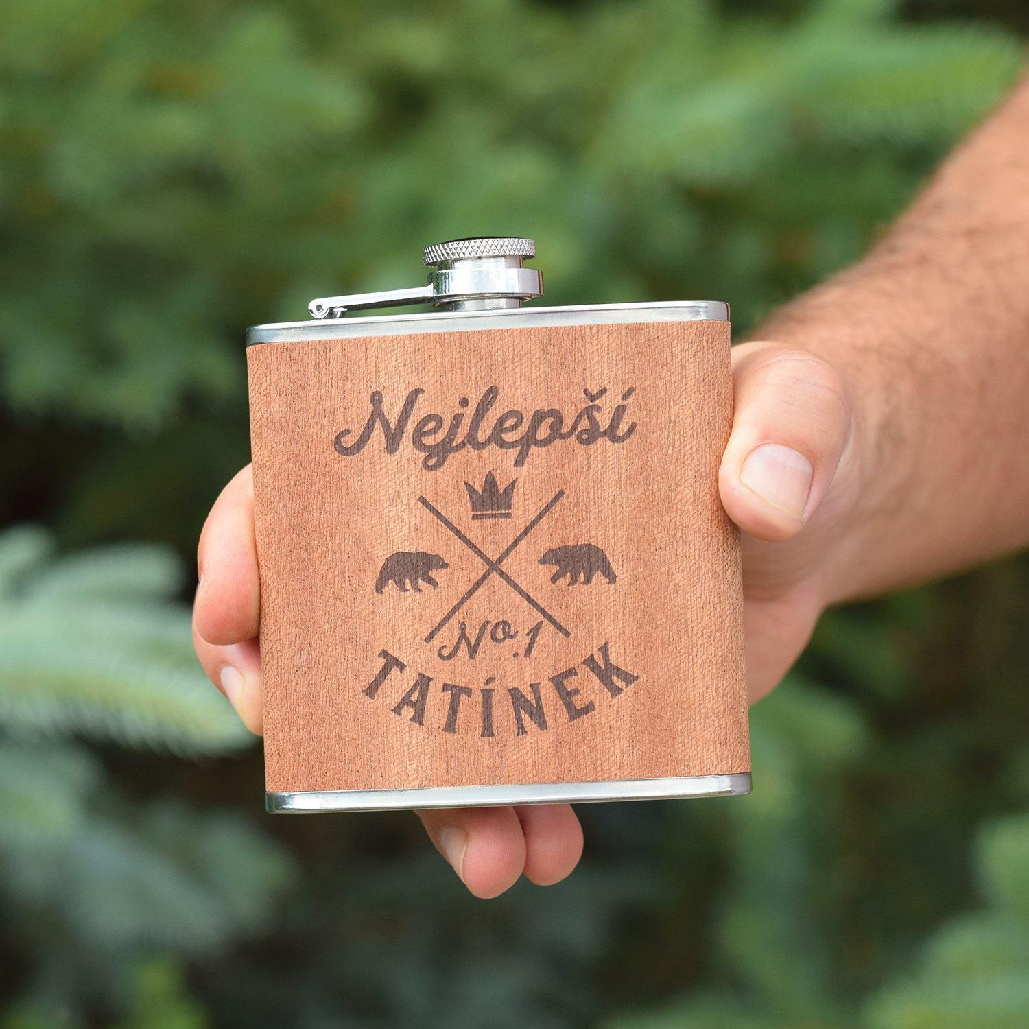 Placatka dřevo a ocel - Nejlepší tatínekPředstavujeme vám originální placatku s dekorem dřeva, která bude perfektním dárkem pro každého tatínka! Moderní zpracování a přírodní vzhled placatky bude dobře sloužit nejen všem zálesákům, cyklistům, houbařům, horalům, rybářům, ale prostě všem tatínkům,...