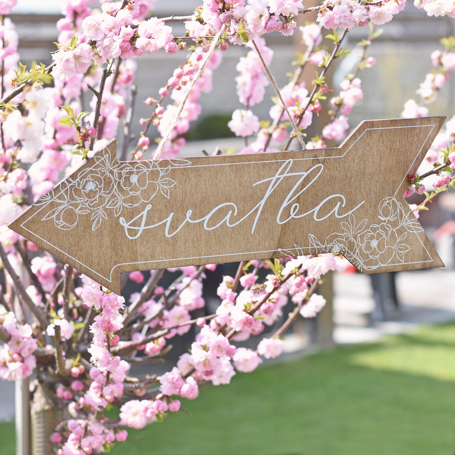 Dřevěná šipka - SvatbaChystáte svatbu a hledáte originální doplňky, které vám pomohou dodat této krásné události šmrnc?Pořiďte si toto dřevěnou cedulku, která už nasměruje svatebčany na místo konání svatby. Cedulku jsme doplnili o jemné květy pivoněk.velikost: 44 x 15 cmMOHLO BY VÁS ZAJÍMAT :➤...