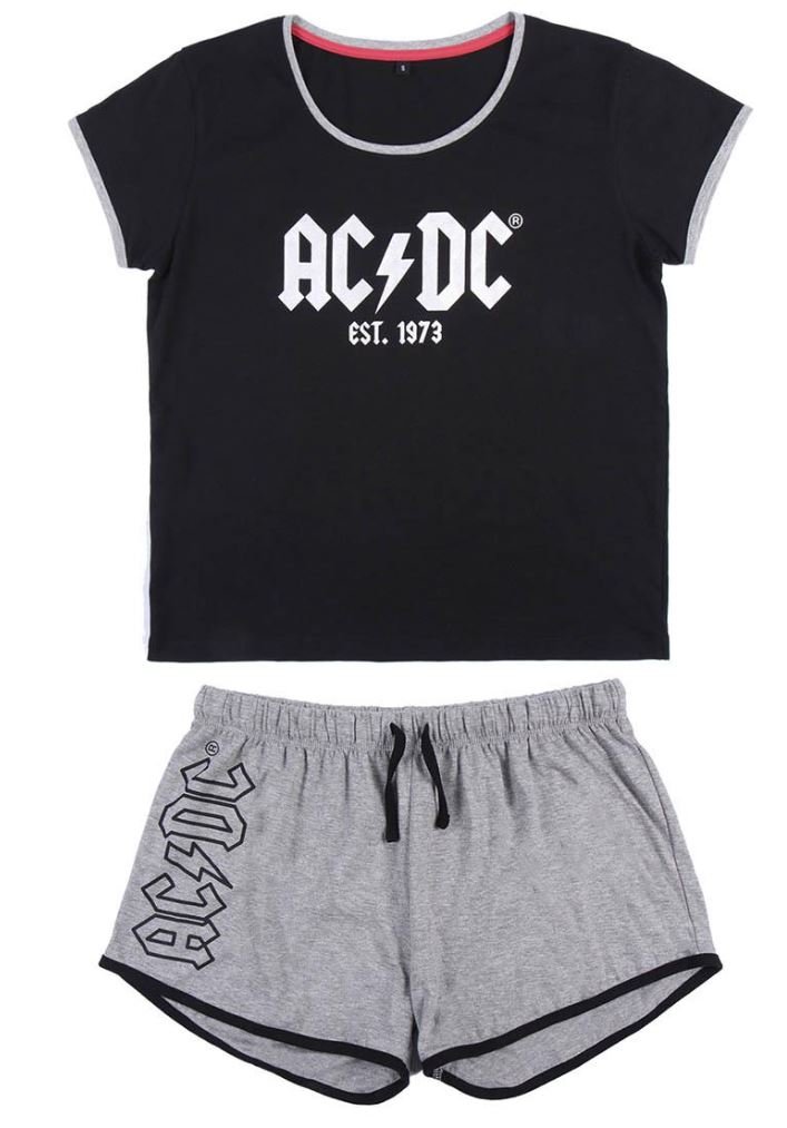 Atraktivní černo-šedé pánské pyžamo s krátkými nohavicemi a logem AC/DC.