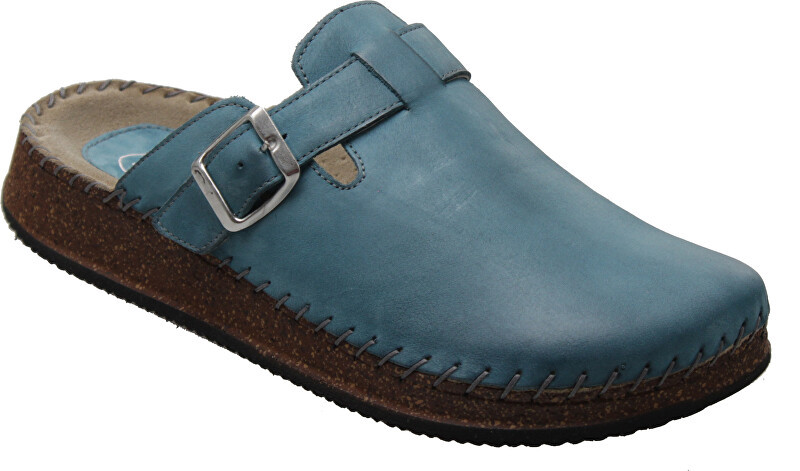 Dámský pohodlný pantofel s plnou špicí.Výrazně měkčená, pohodlná stélka z usně.Svrchní materiál - useň.Regulace šíře - přezka.Barva - tyrkysová.Náš tip:V naší nabídce naleznete také další zdravotní obuv. prečítať celé