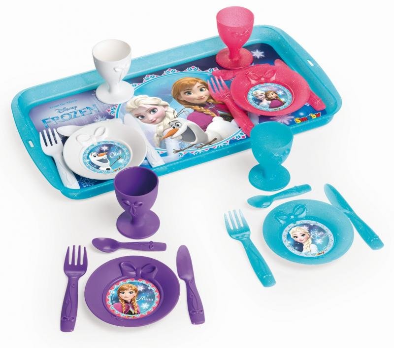 Sada čajového servisu s motivem princezen z filmu Ledové království s třpytivým efektem. Obsahuje 22 ks. 4 talíře, 4 poháry, 4 lžičky, 4 vidličky, 4 nože a servírovací tác s víkem. Rozměry tácu: 40 x 7,5 x 21 cm. prečítať celé