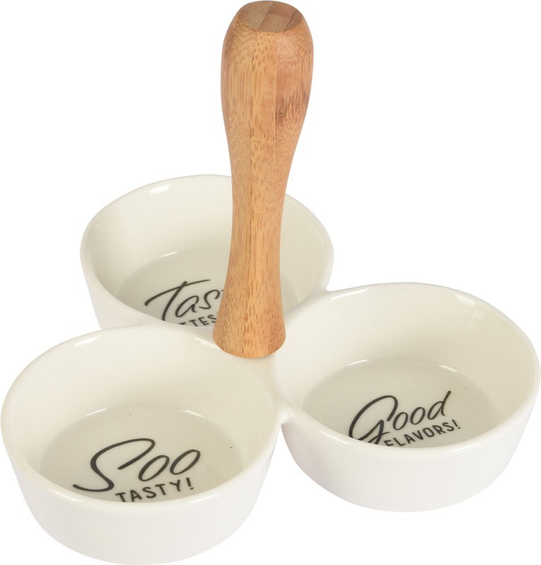 servírovací tác s oddělenými miskami pro nejrůznější příležitostimateriál: bílý porcelán s lesklou glazuroujednoduché a rychlé přenášení díky rukojetiperfektní pro servírování předkrmů, pochutin, dipů a omáčekcelkové rozměry: 21 x 13,5 cm prečítať celé