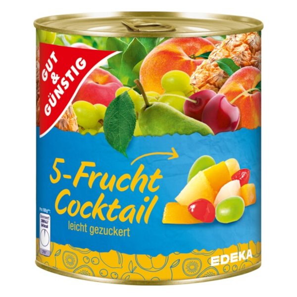 GG Ovocný koktejl z 5 druhů ovoce ve sladkém nálevu 820g