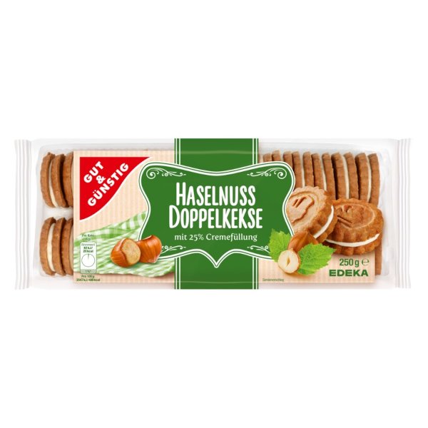 GG Lískooříškové sušenky s vanilkovou náplní 250gLískooříškové sušenky slepované 25% vanilkového krému. Ideální k teplému nápoji nebo jen tak k zakousnutí. prečítať celé