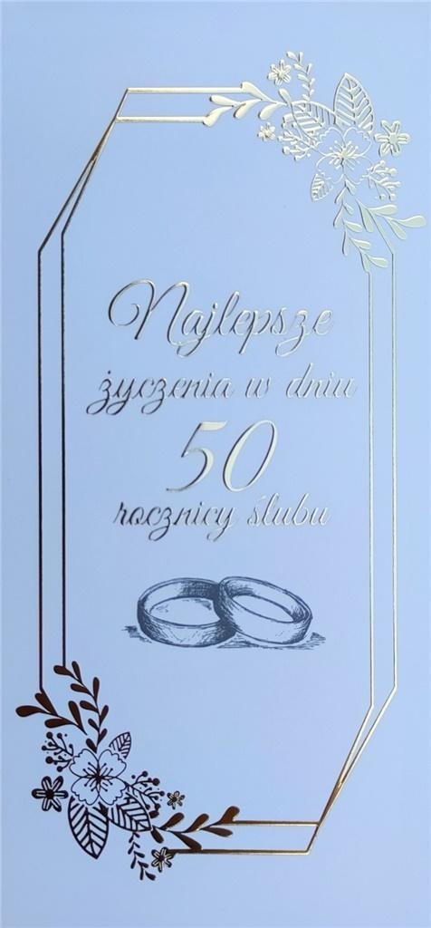 Klasyczny karnet 50 rocznicę ślubu. Uszlachetniony lakierem brokatowym oraz wysokiej jakości złoceniem. Karnet zawiera życzenia.Uwaga: karnet może różnić się kolorystycznie od zdjęcia. prečítať celé