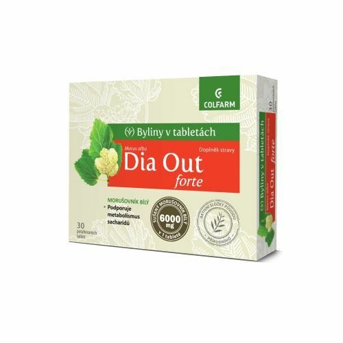 Doplněk stravy Dia Out forte obsahuje výtažek z listů morušovníku bílého, který napomáhá normální funkci metabolismu glukózy.Dávkování:Užívejte 1 tabletu 1x denně půl hodiny před jídlem. prečítať celé