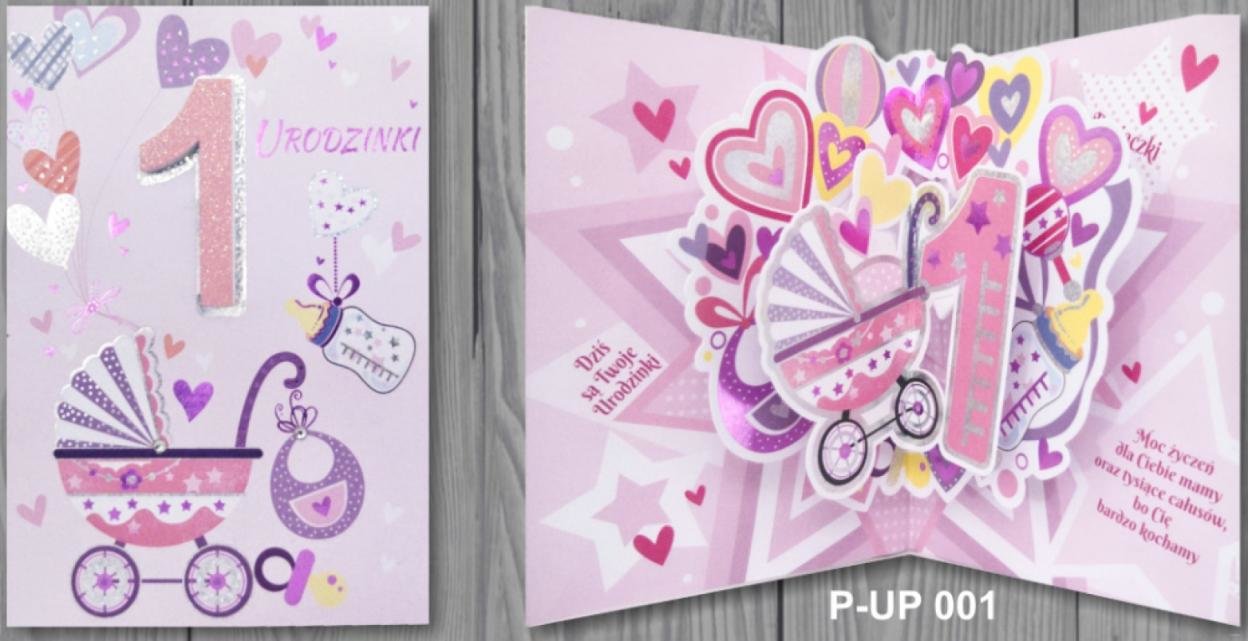 Karnet Przestrzenny B6 Roczek dziewczynka wózek