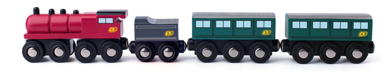 Tato parní lokomotiva má přídavný vozík s uhlím a dva osobní vagony. Je v designu Woody a je kompatibilní se všemi našimi i ostatními vláčkodráhami dostupnými na našem trhu. Jednotlivé vagony jsou spojeny magnetem. Věk: 3+ | Rozměr: 34 cm prečítať celé