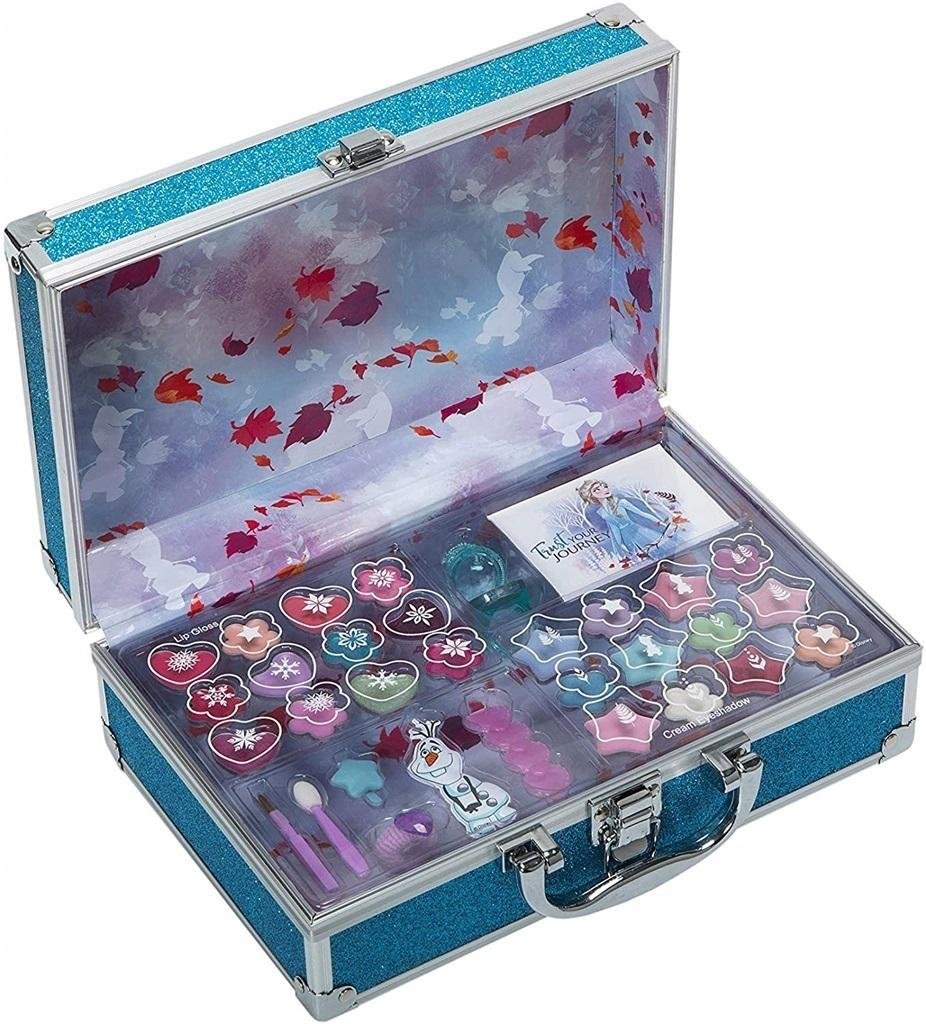 Walizka z kosmetykami dla dzieci Frozen zawiera: 12 błyszczyków do ust, 12 kremowych cieni do powiek, spinki do włosów, 1 pierścionek, aplikator do cieni oraz pędzelek do ust. prečítať celé