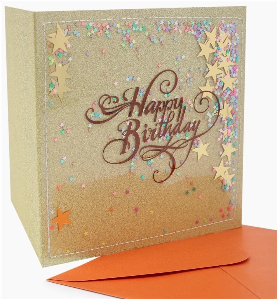 Karnet kwadrat NMH-005 konfetti Urodziny złote