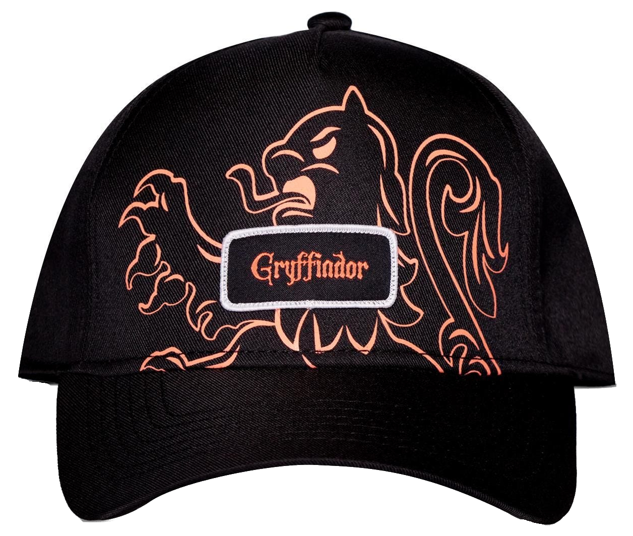 Atraktivní černá baseballová čepice vyvedená se znakem bradavické koleje Nebelvír.