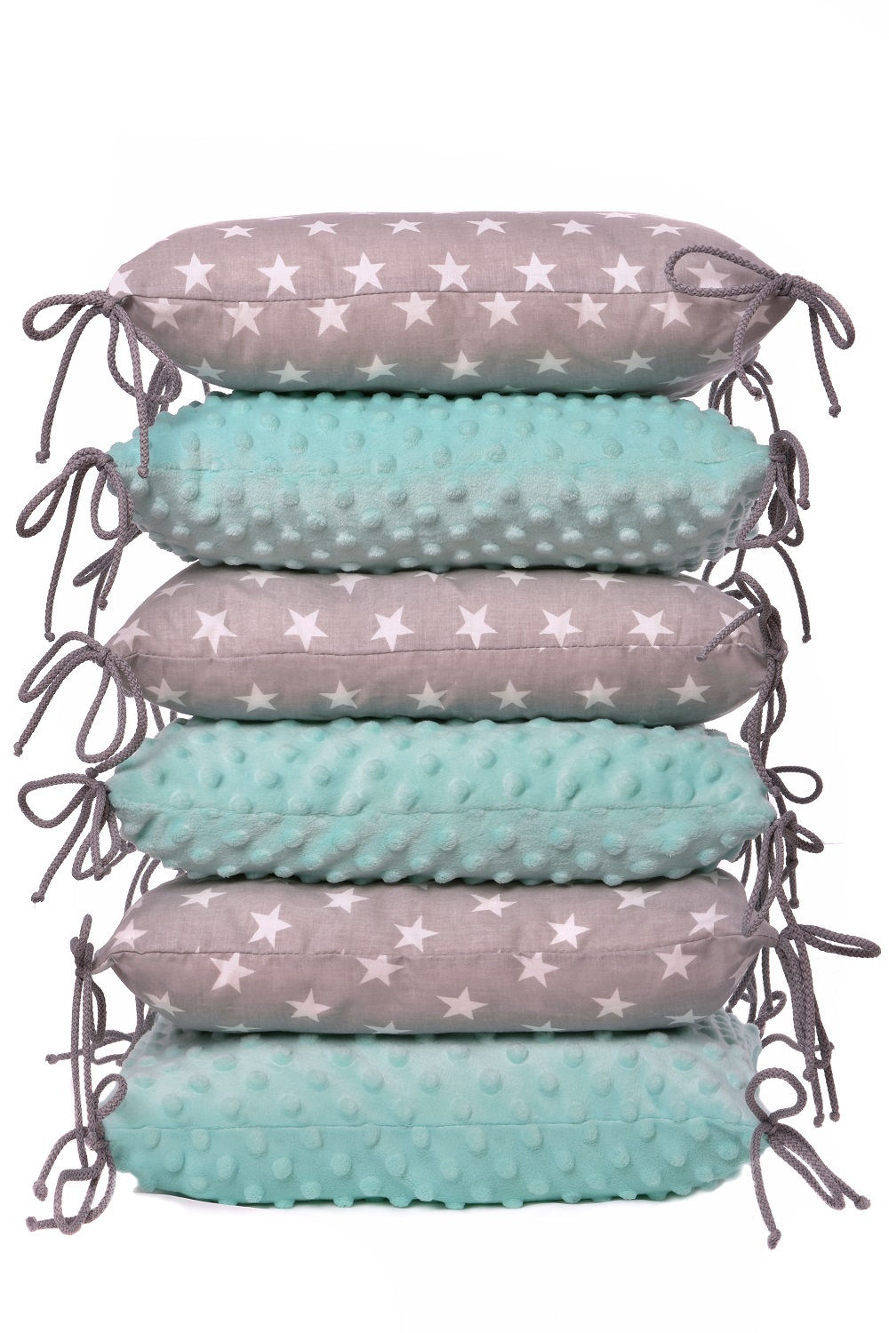 Polštářkový mantinel T-TOMI tvořený 6 kusy jednotlivých polštářků o velikosti 35 x 35 cm vyrobený ze 100% bavlny a z jemného, hřejivého a luxusního materiálu MINKY (3+3). Polštářky T-TOMI lze uvázat po boční straně postýlky a poskytnou tak Vašemu děťátku ochranu, pohodlí a bezpečí zároveň....